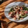 salad, rocket, cherry tomato, grilled chicken, thyme & honey sauce