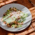 lettuce, chicken, bacon, croutons, ceasar dressing, parmesan