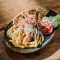 papas secret sauce, caramelised onions, cheese, lettuce, tomato, pickles, fries